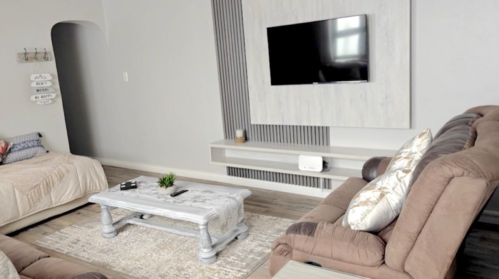 Guests enjoy a private bathroom, fully equipped kitchen, washing machine, and TV.